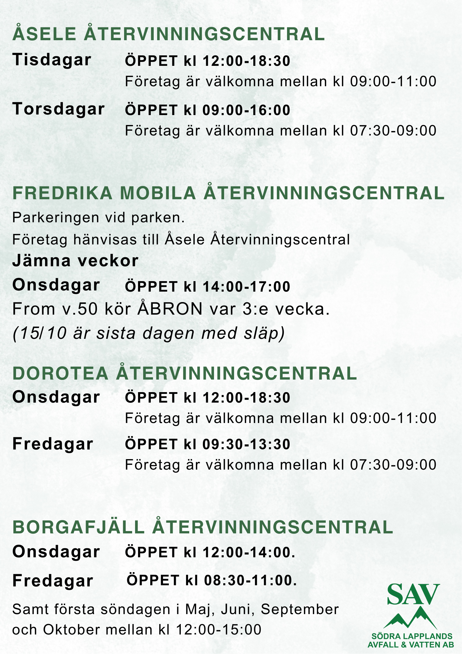 Södra Lapplands Avfall och Vatten AB är ett samägt kommunalt bolag för Dorotea och Åsele kommuner.